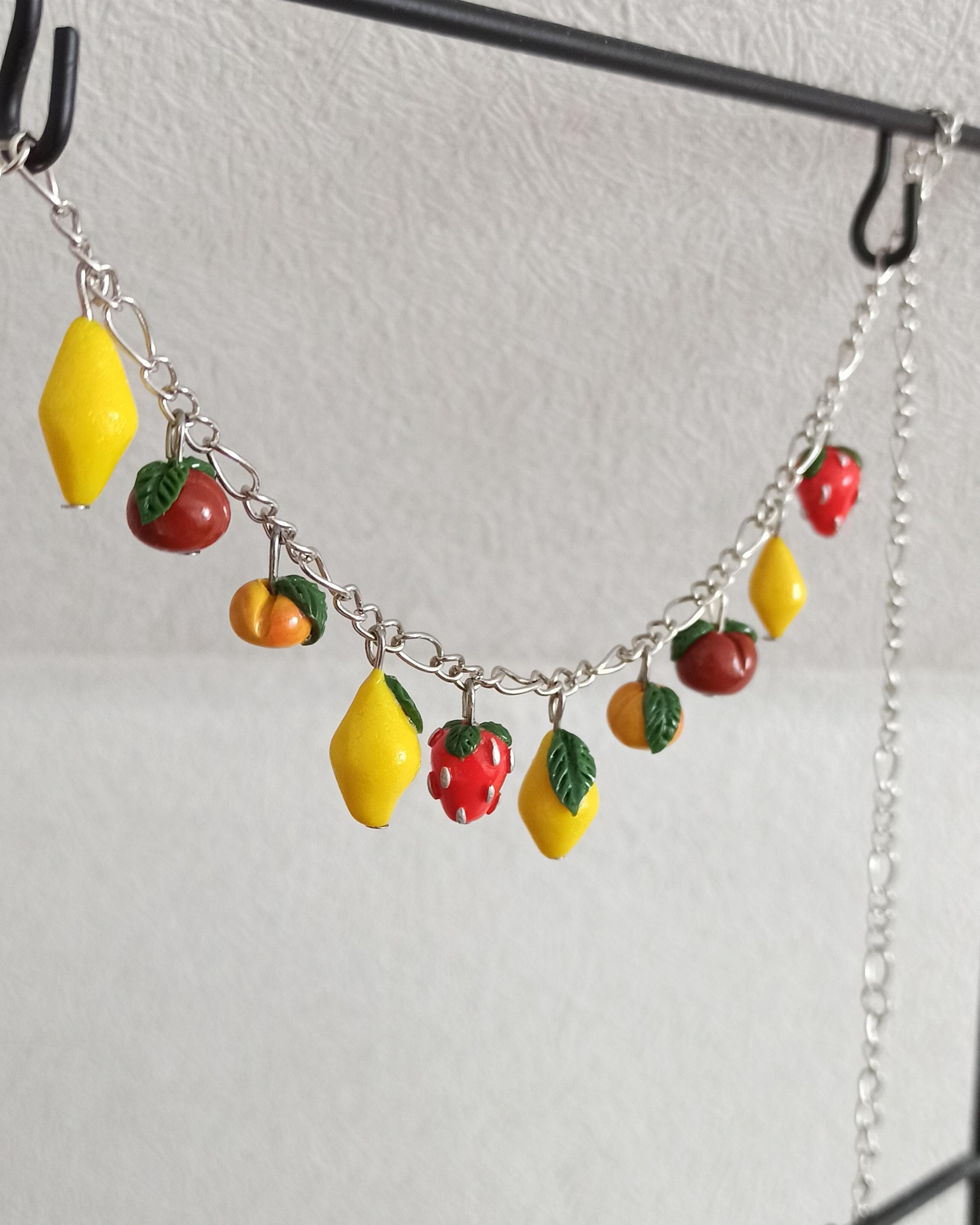 Surprise fruit lover with this cute summer vibe silver necklace with small hand painted polymer clay fruits. Lightweight and perfect for as summer necklace for every outfit.